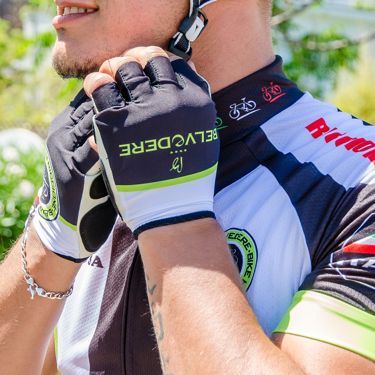 Made in Italy Belvedere cycling green Gloves made from Lycra with padding on the palm for added protection of the palmar nerves.
