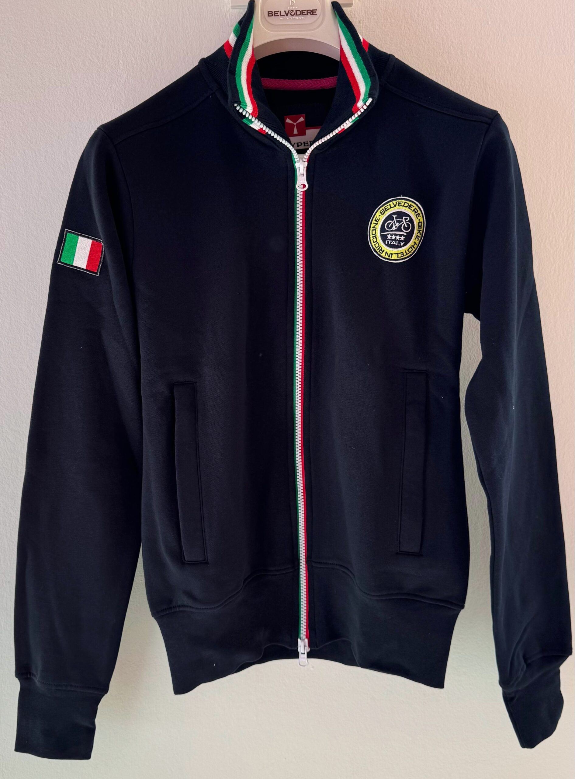 Made in Italy, Women fit, Belvedere Blue Sweater italian colours. Full zip with contrasting tricolor, contrast color rib collar, two external pockets.
