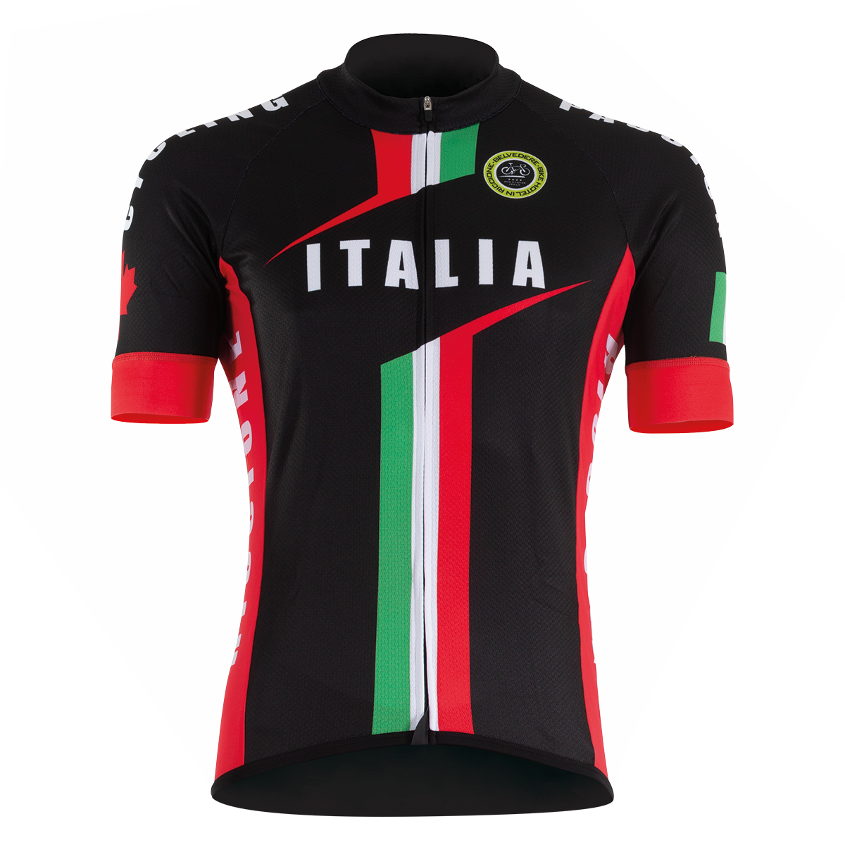Made in Italy Italia Loves Canada black top with short sleeves. Elastic sleeve-end band and back reflective pocket for a better visibility.