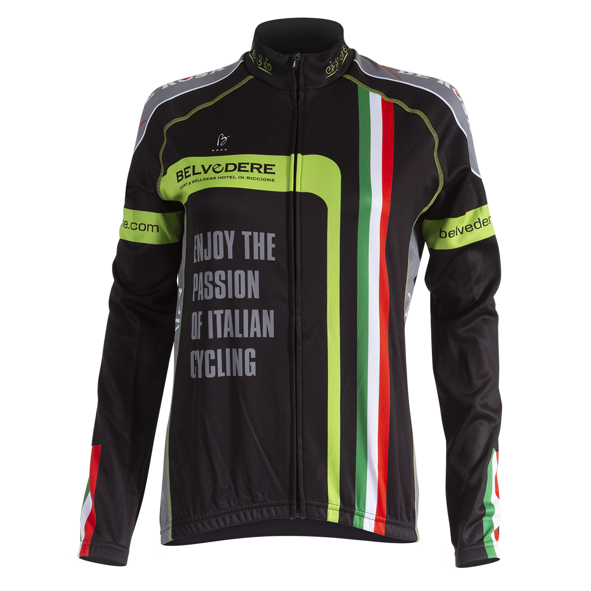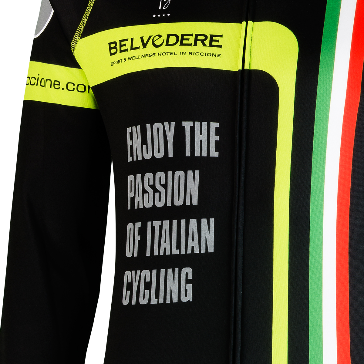 Made in Italy Riccione long-sleeved cycle top. Smooth material for winter clothing with inner lining to maintain warmth.