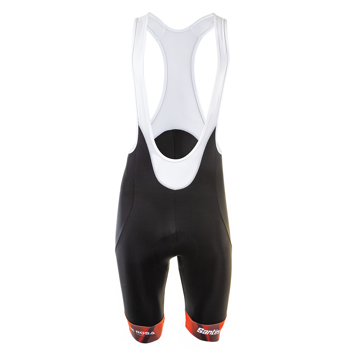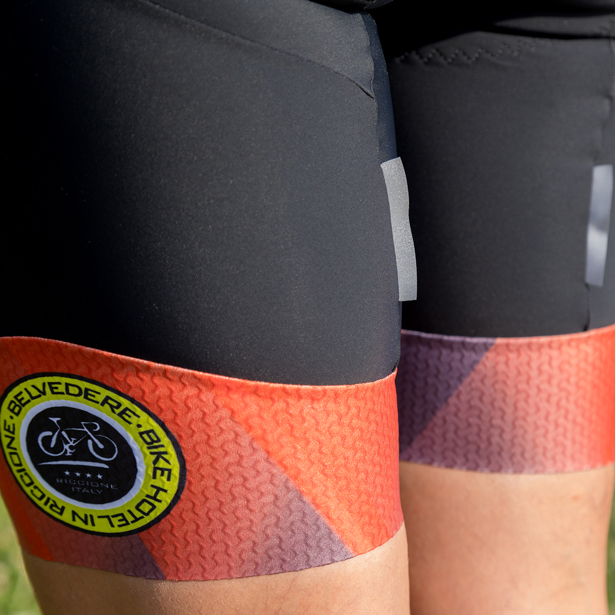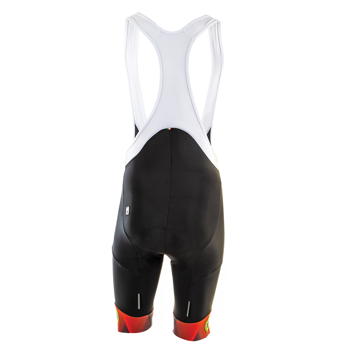 Made in Italy cycle shorts with bibs, with breathable mesh braces and reflective details on the back to make you visible all day long.