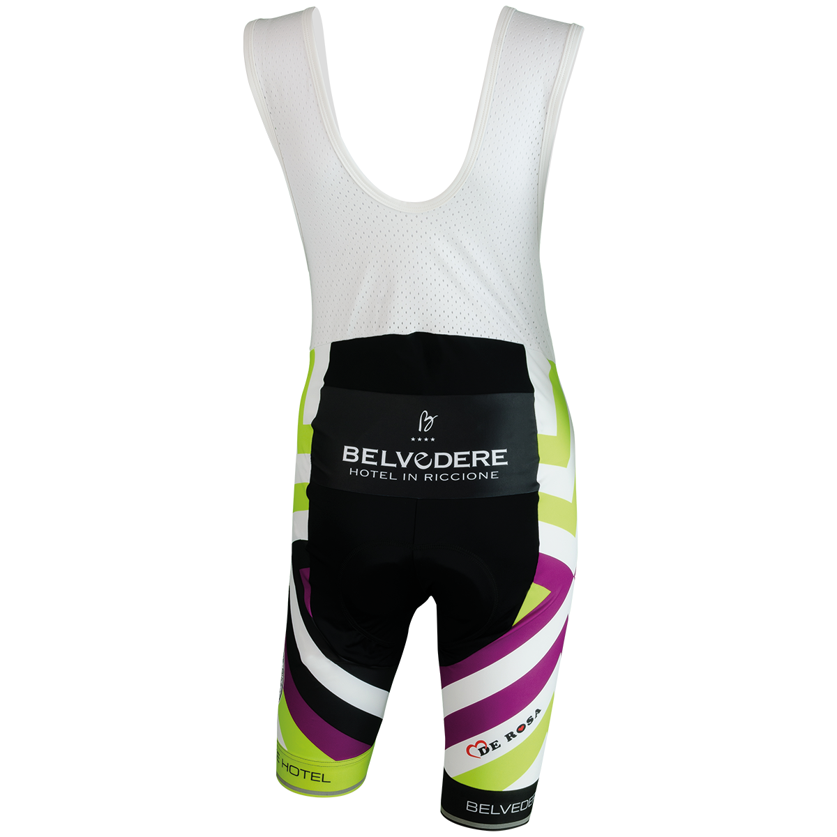 - Lycra cycling bib shorts with Viola stripes. Maximum comfort, lightweight, breathable and stretch. Aerodynamic and great body adherence guaranteeing maximum freedom of movement. Lycra can be stretched to between four and seven times its initial length but returns instantly to its original condition as soon as the tension is released.